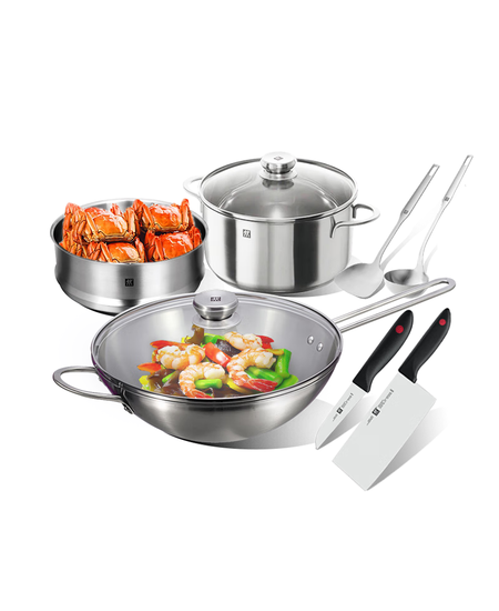 双立人(ZWILLING)锅具套装不锈钢炒锅汤锅蒸笼切菜刀水果刀厨房好物百年经典7件套