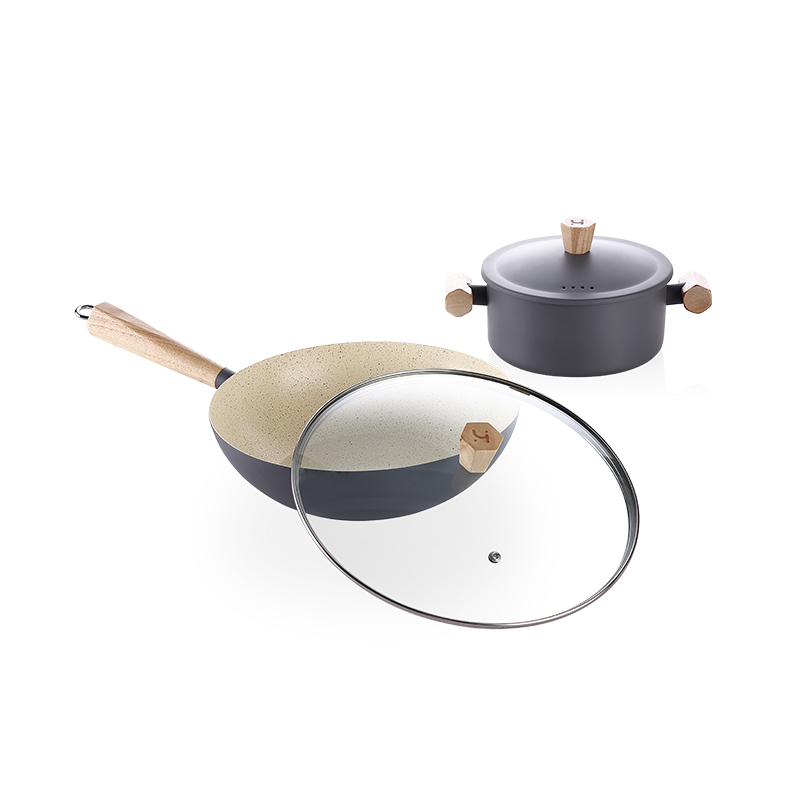 艾铂赫IBOH)麦饭石色不粘炒锅三件套 优品生活 BH-T557
