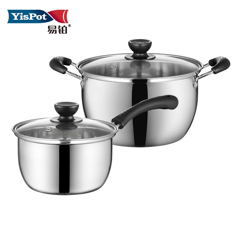 易铂特里尔无磁不锈钢汤锅奶锅炒锅组合厨房套装YP-8017