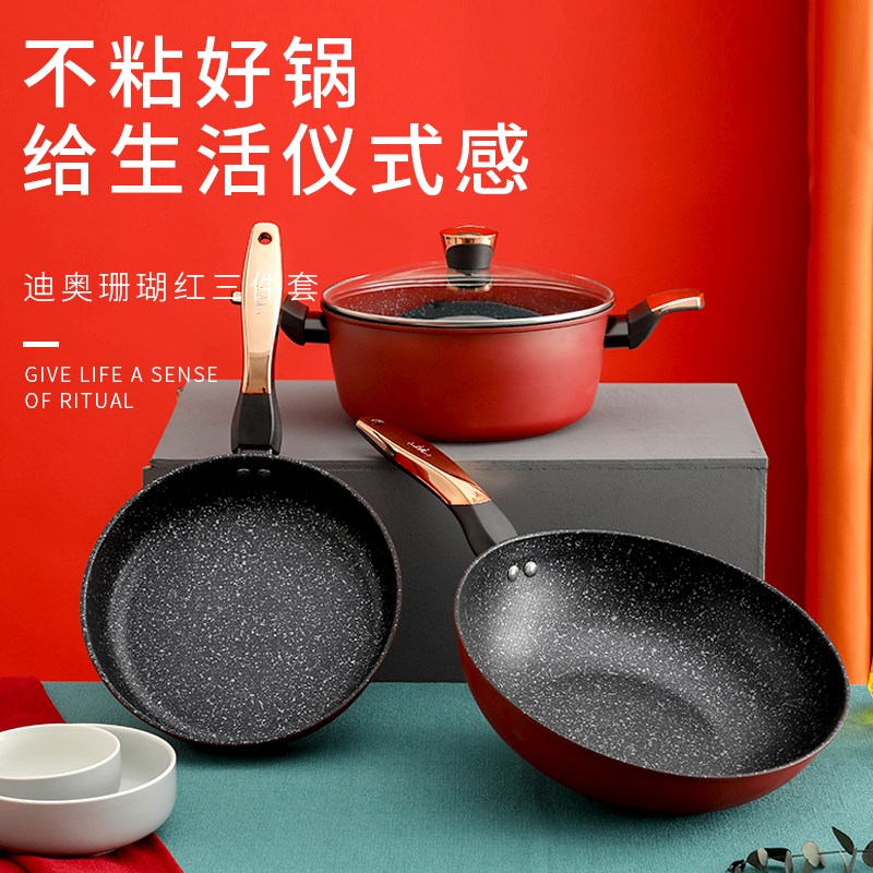 英麦斯INMINDS迪奥珊瑚红三件套KAZT2035TZ 麦饭石不粘套装锅 30cm/24cm/24cm
