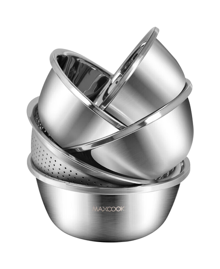 美厨(maxcook)不锈钢盆筛五件套 加大加厚调料盆洗菜盆和面盆味斗套装 MCPW-5