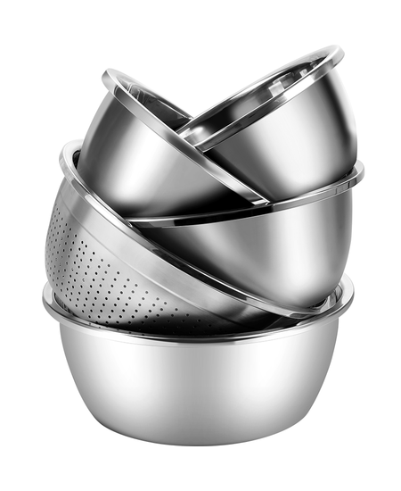 炊大皇 不锈钢盆筛五件套304钢加大加厚洗菜盆沥水和面盆沙拉拌菜调料盆