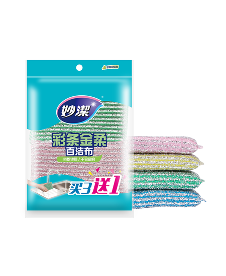 妙洁彩条金柔百洁布4片洗碗海绵擦刷锅神器类钢丝球厨房丝瓜络瓤