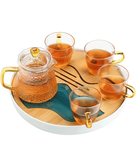 苏氏陶瓷创意茶盘茶具套装配玻璃锤纹泡茶壶带四个手柄茶杯J0271