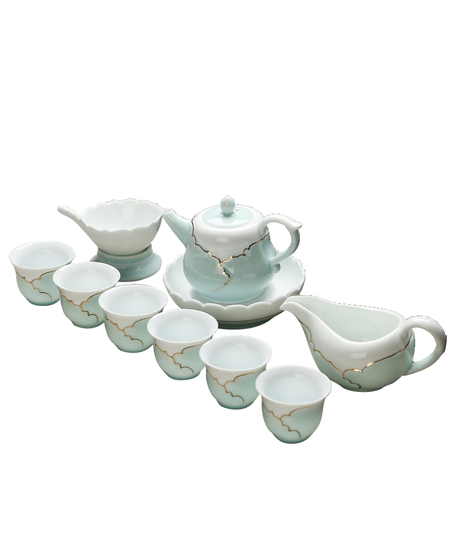 苏氏陶瓷(SUSHI CERAMICS)茶具套装忆荷陶瓷功夫茶具青瓷手绘描金茶杯子茶壶套组中秋礼盒