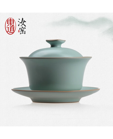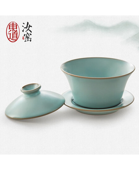 东道汝窑茶具 三才盖碗开片汝瓷泡茶碗礼盒装 三宝盖碗2022款(天青)