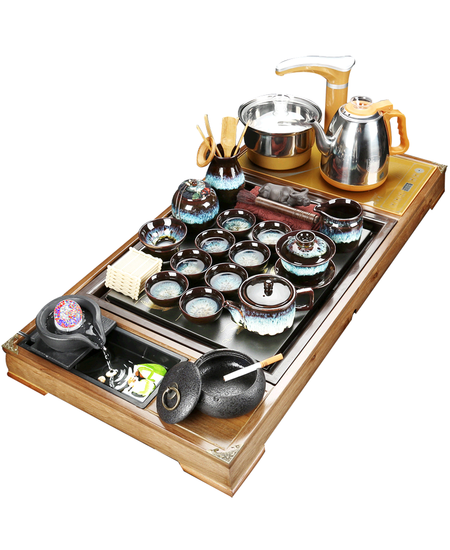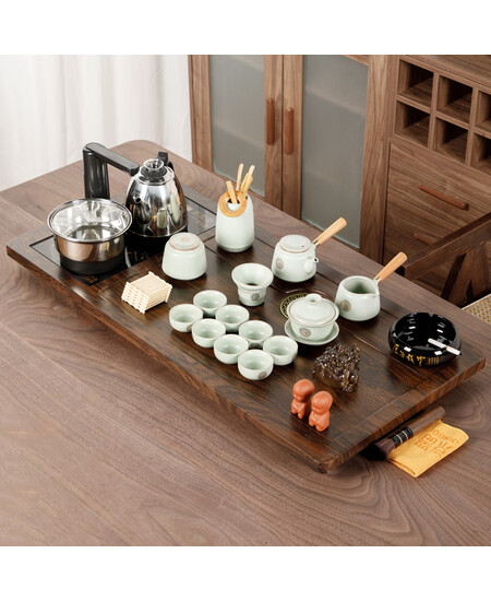 尚帝功夫茶具套装家用汝窑茶具茶壶茶叶罐茶道科技木茶台烧水壶一体