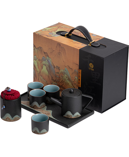 苏氏陶瓷(SUSHI CERAMICS)手绘彩画整套茶具配干泡盘直筒壶茶叶罐7件功夫茶杯中秋节日礼