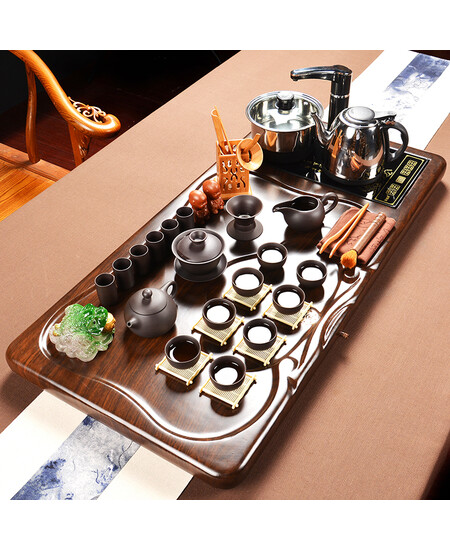 尚帝(shangdi)功夫紫砂茶具茶盘家用套装四合一 压板大平板圣龙紫砂电热炉套装