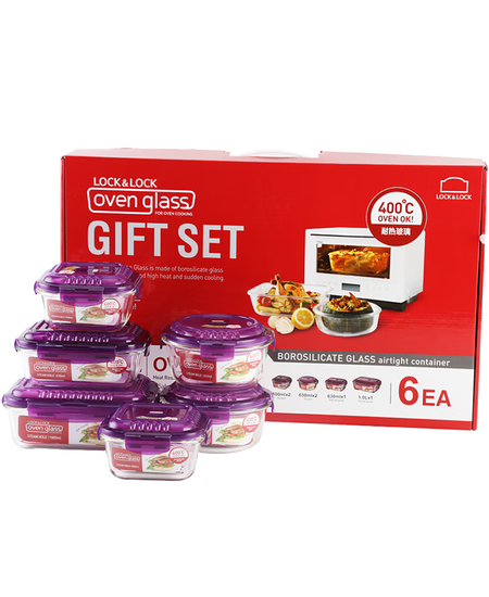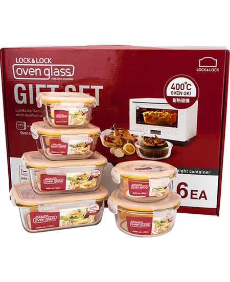 乐扣乐扣(LOCK&LOCK)耐热玻璃保鲜盒微波炉饭盒上班族便当盒学生水果饭菜餐盒6件套
