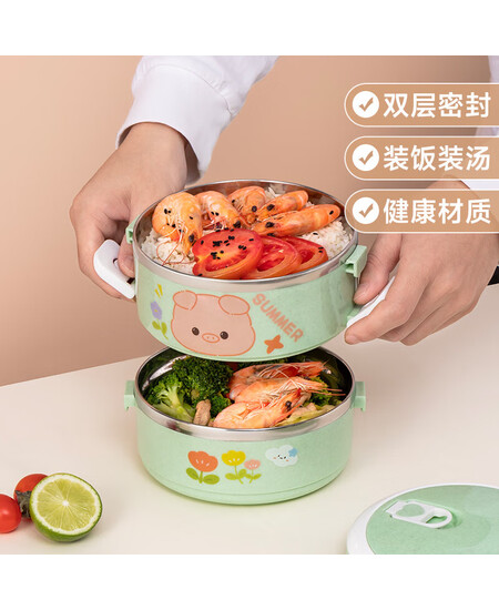 贝瑟斯 双层304不锈钢保温饭盒 便当盒学生密封打饭手提便携餐盒桶饭缸