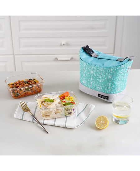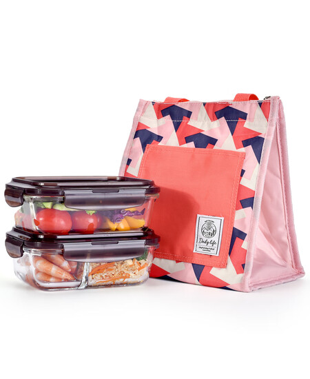 乐扣乐扣(LOCK&LOCK)保鲜盒 微波炉饭盒便当盒两件套送便当包560+610ml LLG990S101