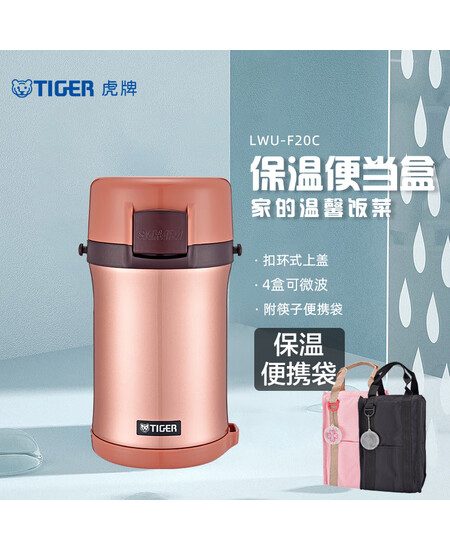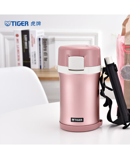 虎牌(TIGER)不锈钢保温饭盒高性能保温饭盒附便携带LWU-F20C-PD蜜桃色1.48L