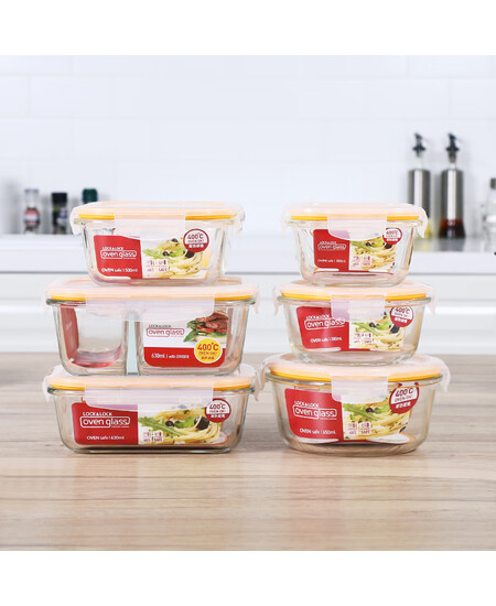 乐扣乐扣(LOCK&LOCK)微波炉饭盒 耐热玻璃套装保鲜盒 含分隔六件套 LLG429CS004