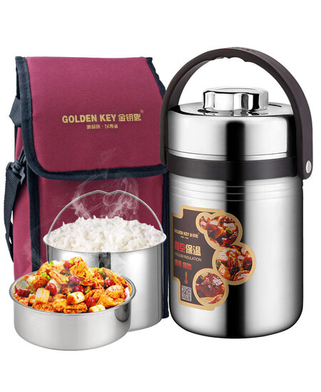 金钥匙(GOLDEN KEY)304保温提锅 1.5L直型防溢真空不锈钢饭盒 保温桶 GK-R1500T