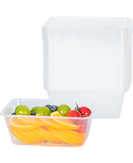 特美居(temeiju)一次性饭盒长方形透明塑料快餐盒加厚带盖打包盒餐具50套装1000型