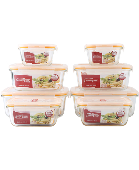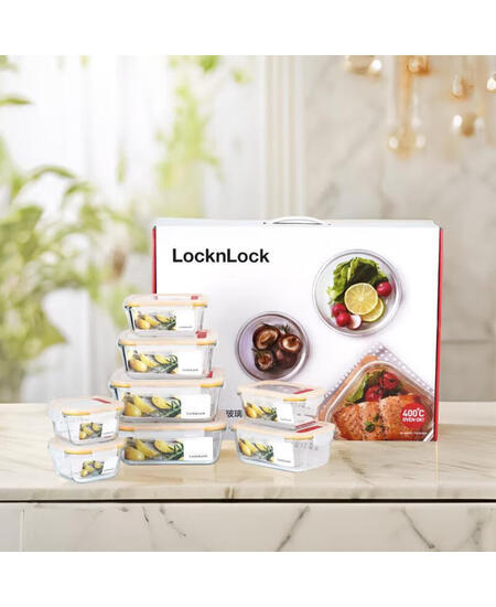乐扣乐扣(LOCK&LOCK)格拉斯耐热玻璃保鲜盒八件套装冰箱收纳微波炉饭盒LLG447S014