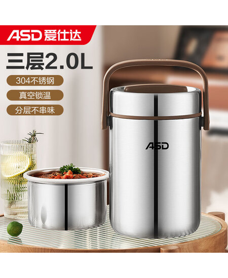 爱仕达饭盒保温提锅304不锈钢真空保温桶2L便携保温便当盒 RWS20T3WG-T
