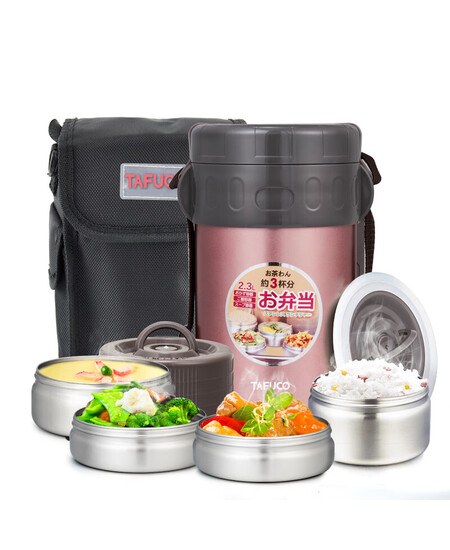 泰福高(TAFUCO)保温饭盒 304不锈钢保温提锅大容量 四层免加热保温桶 T-2651桃粉色2.3L带保温包