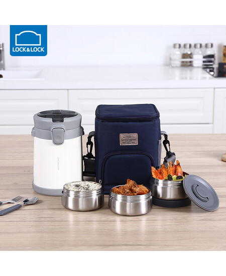 乐扣乐扣LOCK&LOCK不锈钢分隔保温饭盒便携式提锅 大号白色LHC8040WHT