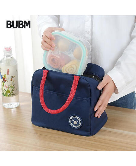 BUBM 饭盒袋双层铝箔保温袋带饭手提午餐包学生保温便当包防水加厚 BWT-01 藏青色