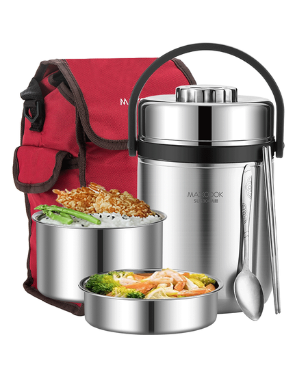 美厨(maxcook)304不锈钢保温饭盒提锅 2L真空防溢保温桶 配餐具保温袋MCTG814