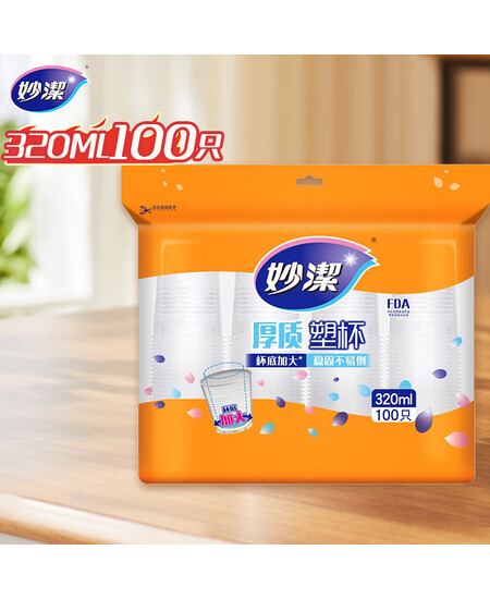 妙洁 塑料一次性杯子 茶水太空航空透明食品级加厚 320ml*100只装大号