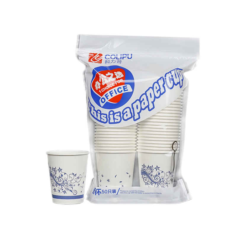 科力普 COLIPU 办公之选 一次性商务纸杯 加厚型 250ml (白色) 50只/包 20包/箱 9盎司 蓝色花纹款