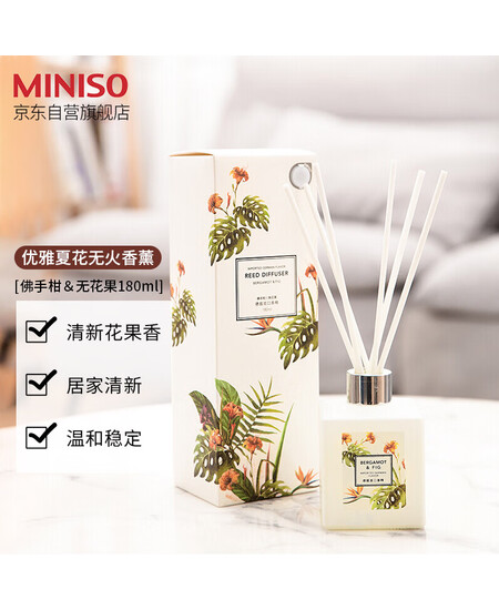 名创优品MINISO优雅夏花无火香薰 佛手柑&无花果180ml居家室内藤条