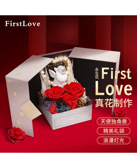 FirstLove永生花独角兽红玫瑰花礼盒七夕情人节生日礼物送女友
