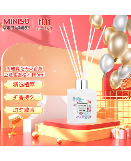 名创优品MINISO优雅夏花无火香薰 豆蔻&雪松木180ml居家室内藤条香氛精油