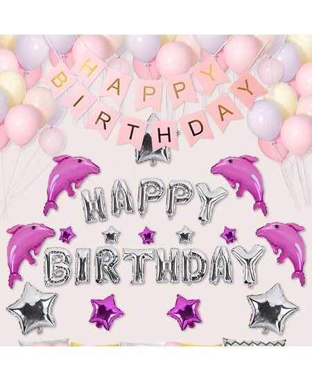 新新精艺 生日气球装饰彩旗生日快乐派对party背景墙布置儿童成人男女浪漫表白海豚款 含打气筒点胶彩带