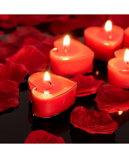FOOJO 花瓣心形红色蜡烛套装七夕情人节表白浪漫求婚生日布置婚庆蜡烛 10只送花瓣