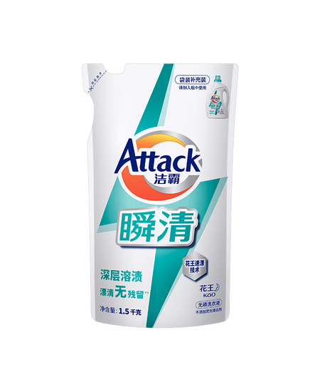 洁霸(ATTACK)瞬清无磷洗衣液 3斤补充装双重活力酵素弱酸泡沫技术无残留