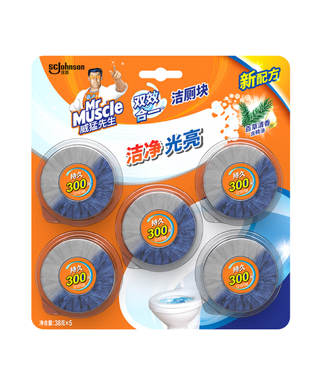 威猛先生(Mr Muscle) 洁厕宝 38g*5块 百草香型 蓝泡泡洁厕块 厕所马桶清洁祛垢除异味