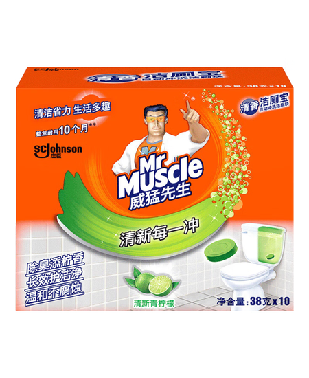 威猛先生(Mr Muscle) 洁厕宝38g*10块 柠檬香型 蓝泡泡洁厕块 厕所马桶清洁祛垢除异味
