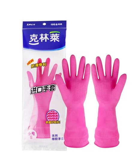 克林莱越南进口清洁手套 橡胶手套 家务手套双层加厚防滑耐用洗衣服洗碗手套 S 小号 CR-1