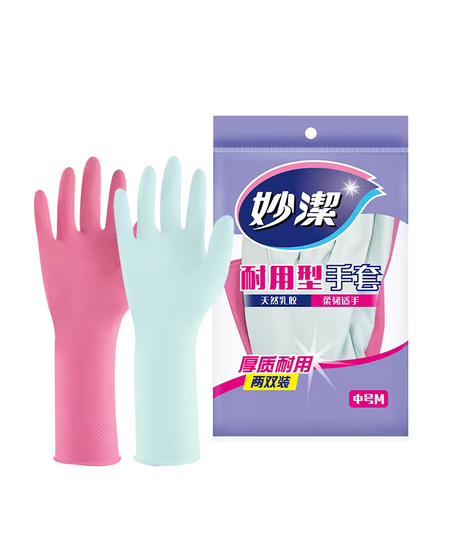 妙洁耐用型手套 天然乳胶 2双装 中号M码洗碗手套多款包装随机发货