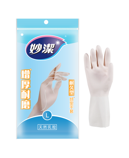 妙洁耐久型乳胶手套 1双 大号 内里喷绒 加厚耐用型 厨房洗碗家务手套