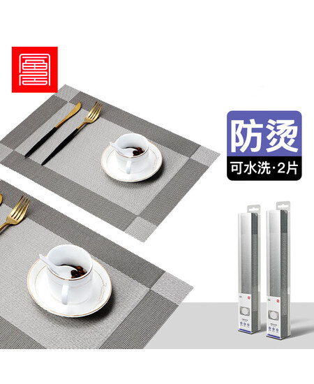foojo餐垫 实木餐桌西餐垫隔热垫防水防油防烫茶几桌垫 银灰2片