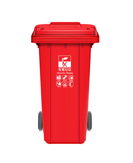 美家日记(MEIJIARIJI)户外分类垃圾桶环卫垃圾桶可定制LOGO 240升带轮红色(有害垃圾)
