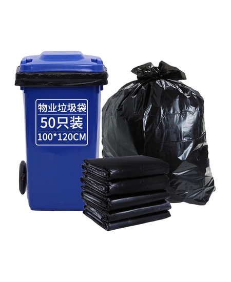 利得平口垃圾袋黑色100*120cm50只单面1.8丝特大号酒店物业袋增厚装