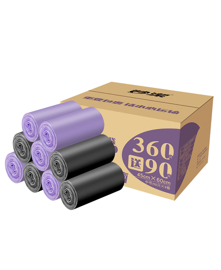 妙洁背心垃圾袋黑紫两色45*60cm450只单面0.8丝点断式中号厨房客厅