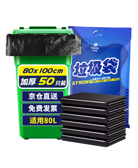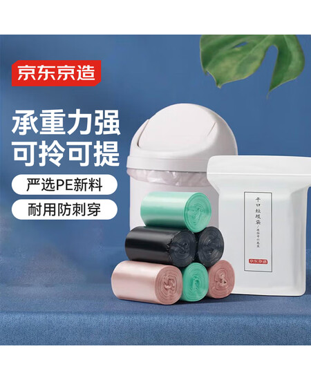 京东京造 抽绳式垃圾袋50*55cm*60只 超厚18μ1.8丝 手提厨房家用加厚大号