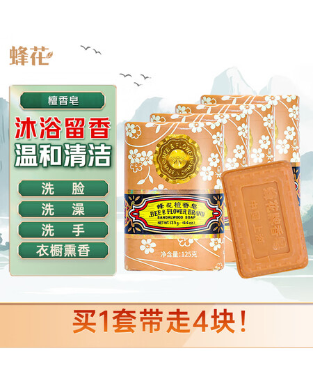 蜂花香皂沐浴男士持久留香香体檀香皂洗发皂洗澡洗脸女士125g*4
