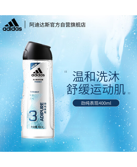 阿迪达斯 (adidas)男士香波沐浴露劲纯表现400ml 三合一洁面沐浴洗发