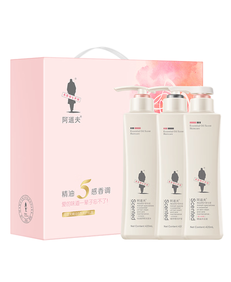 阿道夫轻柔丝滑洗护沐套装 洗发水护发素沐浴露420ml*3 精油香护理