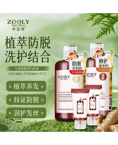 卓蓝雅生姜防脱洗护4件套(洗发水400ml+护发素400ml+小样*2新老随机)