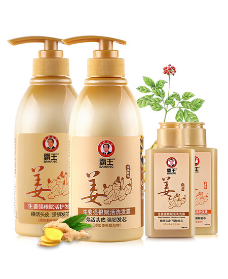 霸王生姜洗发水护发素洗护套装(生姜强根赋活洗发露450ml+护发素450g送旅行装80ml+80g)