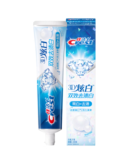 佳洁士3D炫白双效牙膏美白去牙渍防渍含氟防蛀220g京东自营新老包装混发